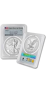 The 2023 (W) 1 oz American Silver Eagle Bullion Coin is a premium collectible struck at the West Point Mint, featuring .999 fine silver purity and a perfect MS-70 grade certified by NGC. With a diameter of 40.6 mm and thickness of 3.2 mm, this coin combines iconic American symbolism with investment-grade quality, making it a must-have for discerning collectors and investors alike.