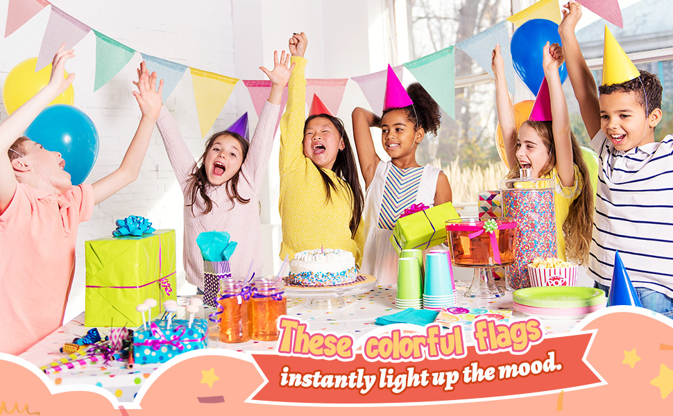Tatuo Multicolored Pennant Flags Bunting Banner Pastel Fabric Triangle Flag Garland for Birthday Graduation Bridal Party Summer Decoration Hanging on Wall Ceiling Window (100 Flags)