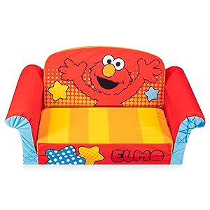 The Marshmallow Furniture 2-in-1 Flip Open Foam Couch Bed is a vibrant, kid-sized sofa designed for toddlers 18 months and up. Featuring a durable foam core and a machine washable polyester cover with child-safe zipper, it easily converts from a compact couch (10"H x 28.5"W x 16"D) to a 39" lounger. Supporting up to 100 pounds, this lightweight, armless sleeper is perfect for playrooms, nap times, and sleepovers, all while showcasing fun Elmo graphics to brighten any space.