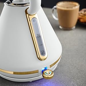 The Tower T10044WHT Cavaletto Pyramid Kettle combines rapid boil technology and a spacious 1.7L capacity with a sleek optic white and champagne gold design. Featuring a detachable filter for easy maintenance, a 360-degree swivel base for versatile use, and a 3-year warranty, it’s engineered for fast, convenient, and stylish hot drink preparation.
