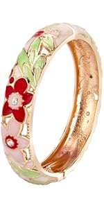 The UJOY Womens Colorful Enamel Bangle Bracelet features a durable, vibrant enamel finish on a comfortable 2.4-inch diameter cuff with a spring-hinged clasp. Packaged in an elegant gift box, it’s designed for lasting wear and makes a perfect gift for special occasions. Highly rated for quality and style, this bracelet blends traditional charm with modern flair.