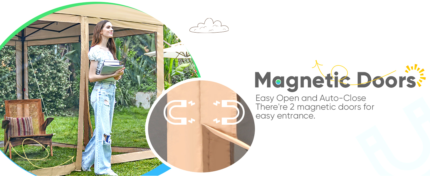 Quictent10’x10’ Pop up Canopy Tent with Netting, One Person Instant Setup Screen House Room Tent Screened- 4 Magnetic Doors, Waterproof (Khaki)