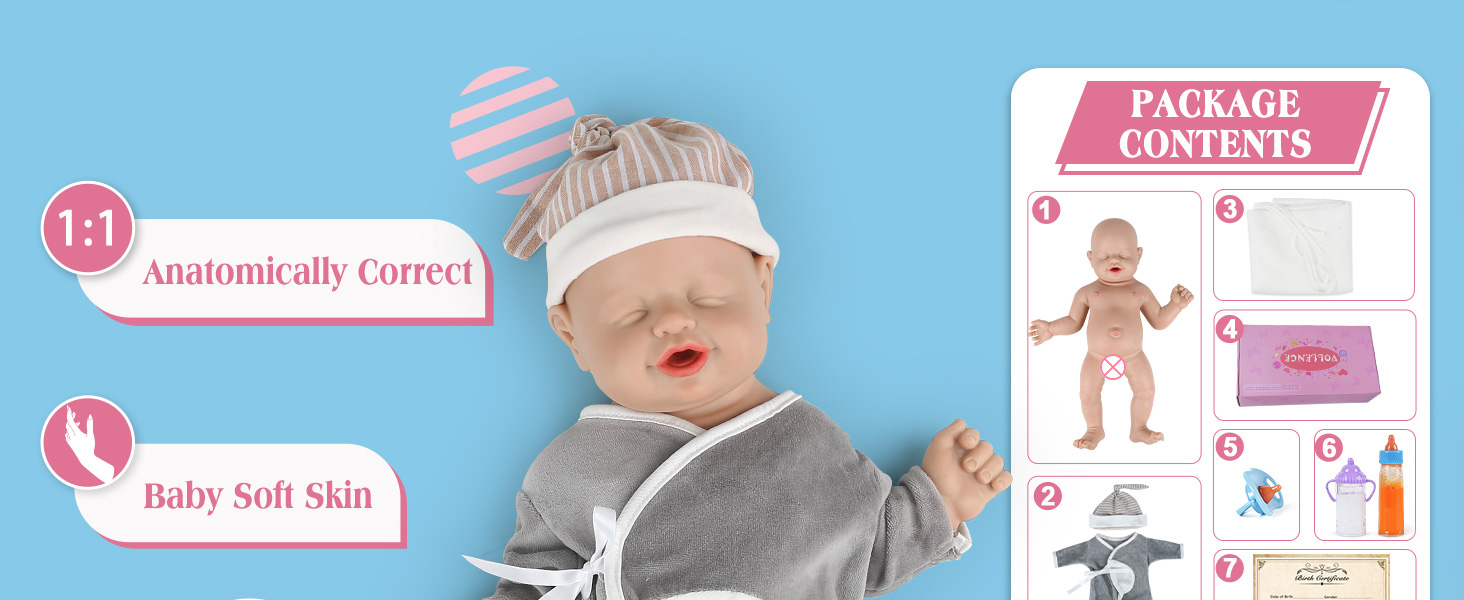 The Vollence 16-inch full-body silicone baby doll offers an ultra-realistic newborn experience with its solid platinum silicone construction, unique birthmark, and soft, lifelike touch. Designed for safety and authenticity, it’s the perfect gift that blends quality craftsmanship with emotional connection.