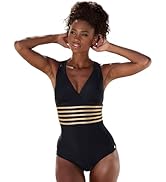The LASCANA Women's Striped Classic Bikini Bottom features a stylish fold-over waistband and decorative side bow, offering versatile mid or low-rise wear. Made from a durable polyamide-elastane blend, it provides moderate rear coverage and a fashionable stripe pattern, perfect for millennial professionals seeking both comfort and chic swimwear.