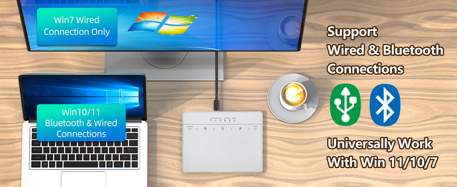MICROPACK Digitally Yours Wired & Wireless Metal Touchpad for PC Computer & Laptop, Rechargeable Trackpad Travel-Friendly Bluetooth & USB Mouse Pad for Windows 7/10/11, Silver