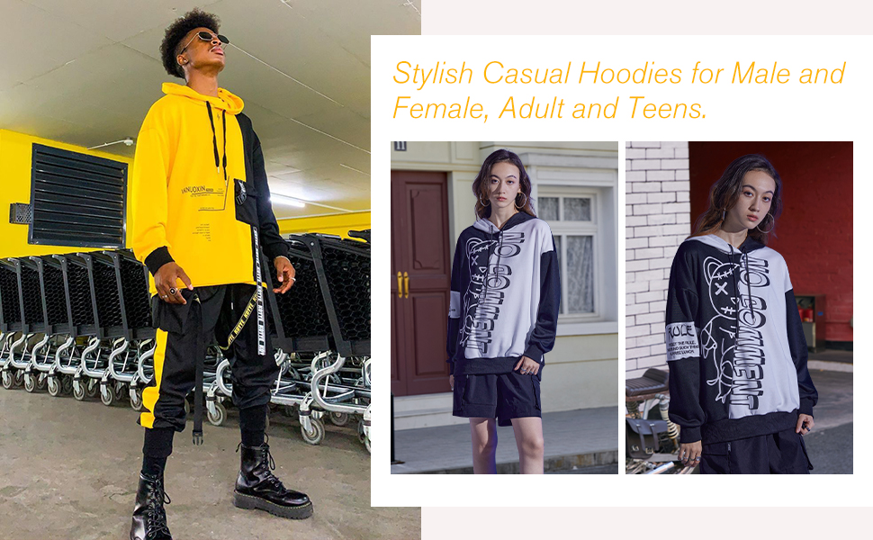 Mens Casual Hoodies Hip Hop Sweatshirts Long Sleeve Streetwear Dance Patchwork Oversized Pullover Printed Hoodie Tops