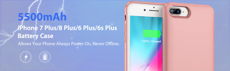 Battery Case for iPhone 7 Plus/8 Plus/6 Plus/6s Plus,5500mAh Portable Protective Charging Case Compatible with iPhone 7 Plus/8 Plus/6 Plus/6s Plus (5.5 inch) Rechargeable Extended Battery (Rose Gold)
