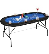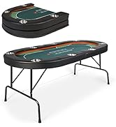 The LUCKYERMORE 48â Octagon Poker Table comfortably seats 8 players, featuring a foldable design for easier storage, soft padded armrests for extended comfort, and 8 integrated cup holders to keep drinks secure. Its sturdy construction and professional layout make it perfect for family gatherings, parties, and competitive game nights.