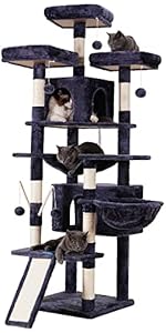 Hey-brother XL Size Cat Tree, 73.4 inch Cat Tower with 3 Caves, 3 Cozy Perches, Scratching Posts, Board, Activity Center Stable for Kitten/Big Cat, Light Gray MPJ032W First of all, I would like to say that my husband and I searched everywhere for a cat tower for Queen Maggie. The prices we found were exorbitant. We hit at least five stores and gave up. I told my husband we should try Amazon, and we did. I looked at several towers and we chose this one. For the price we weren't expecting a whole lot compared to the ones we had already looked at that were twice as much. When the box arrived I was surprised at how heavy it was. I had to drag it across the floor. My husband wasn't home at the time, so I thought I could at least take the box apart. Every part is distinctly marked. No way will you get them mixed up with one another. I laid them all out around me and then started to read the instructions. While other people said the instructions were clear, I thought some of them were not easy to follow. However, I did get two levels finished before my husband got home. Of course, I had Queen Maggie supervising, so that was a great help. She would point out pieces by sitting on them for me. Sometimes she got them right, but most of the time she was wrong. She seemed to go for the softest pieces. I want to stop here to let you know - the pieces we were putting together were heavy. They are not thin boards we are talking about - but sturdy, heavy duty boards. We usually used at least four screws for every piece that was attached. So we were building a piece of furniture that was going to last, and that I was not afraid of letting our cat jump on and off of. The material they used to cover the wood was very nice and soft. Each piece that was exposed to the cat was covered. This was a well thought out tower, so every place that had a screw was covered so that your cat would not find it. Every layer of the tower was centered - so all of the weight would be the same - centered. The were three condos that we added, and above the third level there is a circle hammock and a flat ledge. If you look at the picture you will see scratching posts with natural sisal ropes. I wanted to draw your attention to them to tell you that each of the condos have something that looks very similar to those, but they are totally covered in fabric in each corner on the inside to make them sturdy. The condo on the fourth level actually has five inside it because it has a different shape. That is how sturdy this tower is. When you get towards the top, your cat will have three perches to sit on - one is a little higher than the other two. Each of these perches has extra padding so your cat is comfortable. Now - I would like to say here that - our Queen Maggie isn't quite used to her tower yet. I noticed last night after the lights were out that she was exploring up to the fourth tower. She didn't think I was watching. She actually went out on a limb and sat in the circle hammock. I really wanted to get a picture, but it was dark. I think after a few more days, she is going to really love it. I really can't tell you, unless you have looked elsewhere, what a great deal this is. We looked at some towers that were just straight up and down with a couple of perches and nothing else that were twice as much as this one. This is very nicely made, has so many extras that we didn't see on any other towers. We both loved the price, love the tower and would highly recommend this to anyone looking for a tower for their furr baby. I forgot to tell you that there are three balls for entertainment AND they give you two extra. You also get extra screws. Please really consider this for your baby. I am positive that you will not regret it.