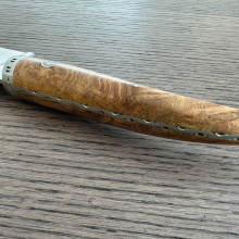 The Laguiole en Aubrac Cuisine Gourmet Bread Serrated Knife is a 9-inch, hand-crafted masterpiece made from ultra-strong 12c27 Sandvik Stainless Steel, featuring a unique olivewood handle. Each knife is a one-of-a-kind creation, ensuring both functionality and aesthetic appeal, perfect for professional chefs and home cooks alike.