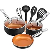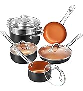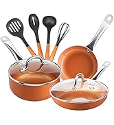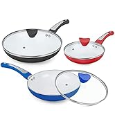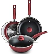 I was slightly skeptical of this cookware when I ordered it. I had brick and mortar shopped several sets of nonstick cookware that was suitable for use on induction tops and the 3 sets I purchased (and returned) failed to perform. Pieces of all three sets had scratched within several uses, and with one piece there was nothing about it that was nonstick. I decided to look here on Amazon and came across this set, and since these pans are being used in my travel van, the concept of a detachable hand was novel to me. I looked at many other sets, since this one does not include one pan I would really like to have, and no kids, which I would like to have as well, I just kept coming back to this set. And so I bought it... All the pans are exactly the right size for me. Both the outside finish and the nonstick finish have been very durable and I haven't had any issue with sticking or scratching. They clean entirely too easily, which in a van is a super bonus, and they function incredibly well with my induction hot plate. The removable handle is awesome! It grips the pans very tightly even with cooking spray on the pan surface, and the set nests and stores compactly, much more so that a set with permanently attached handles. They're very sturdy, not float and bendy like some of the other sets that were over 100$. Lots of pros, yes. But here are the cons; No lids. Tempered glass lids would definitely add to the cost, but would be well worth it, at least for the 2 sauce pans. Also, like I said before, I wish this set included a flat round with about a 1/2 to 3/4 inch lip around. That said, the reality is I can't actually find a deficiency in this set of pans other than it didn't include everything I wanted. There is absolutely nothing materially deficient with this set! I give this set a 100% buy rating!