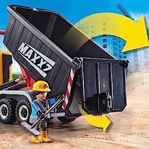 The PLAYMOBIL Interchangeable Truck is a 12.5 x 38.5 x 51.5 cm plastic construction vehicle toy designed for kids 4 years and up. Featuring a cab that fits two figures, a movable loading compartment, and interchangeable containers for hauling or flatbed transport, it offers versatile, hands-on role-playing fun without the need for batteries or assembly.