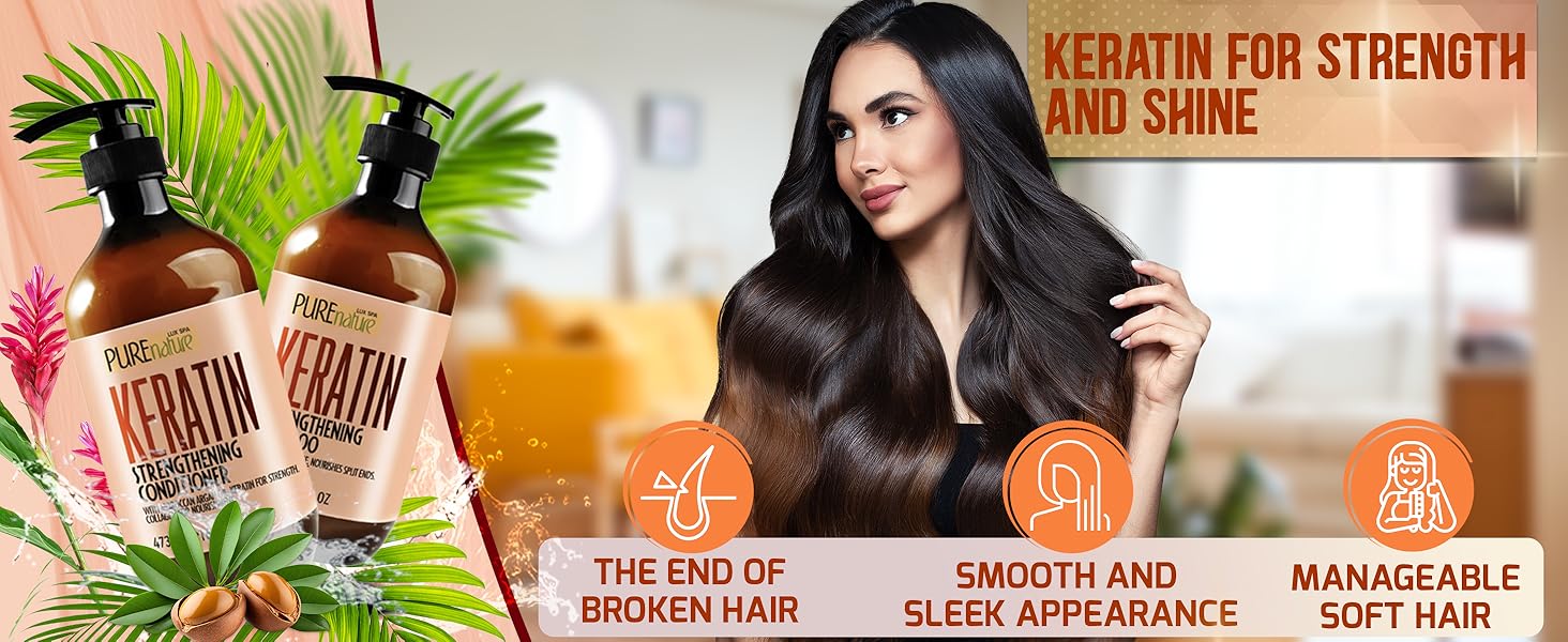 The Keratin Shampoo and Conditioner Set from Pure Nature Lux Spa is a sulfate and paraben-free treatment designed for dry, curly, or damaged hair. Enriched with collagen, argan oil, and silk extract, this salon-grade formula helps prevent breakage, reduces frizz, and enhances shine, making it suitable for both men and women, including those with color-treated hair. Plus, it's cruelty-free, ensuring a kinder choice for the planet.