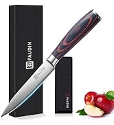 So, I'm not much of a cook. I watch a ton of cooking content and have tried to get into cooking over the years but I'm still, at best, a novice. As such, I never really paid any attention to the kind of kitchen knives I had. My wife and I were gifted some solid knives (Cuisinart, so it was a well-known brand) at our wedding, and they've worked just fine over the years. On a bit of a whim, I decided to order myself some of these Paudin knives after doing a bit of research and buying my brother some (much more expensive) knives for Christmas, because since I don't do a ton of cooking but wanted to see what the fuss was about with better knives, I figured a brand that's been well reviewed as affordable but functional would be a good "starter" set as I try to branch out more with my work in the kitchen as a home "cook." And goodness, I can absolutely tell the difference. These knives are a DELIGHT to work with. They're razor sharp out of the box, feel amazing in the hand, and incredibly sturdy and ergonomic. Baked up a bunch of chicken strips tonight so that I could chop it up for salads and wraps for meal prep this week, and the ease with which these cut through it is absurd. It was a genuinely wonderful experience. That was with the chef's knife. I've played around with the nakiri knife and the paring knife as well, mostly chopping up and peeling apples for my son, and it's genuinely such a night and day difference in terms of ease of cutting and how effortless the process is, I just could not recommend these more highly if you're in a similar situation where you're not an avid cook but looking for something that's affordable but extremely high quality. They feel great, they look great, the blades are the perfect thickness/sharpness straight ouf of the box, the size of the knives and the comfort of the handles is just fantastic. I love these knives and am so happy with the purchase.