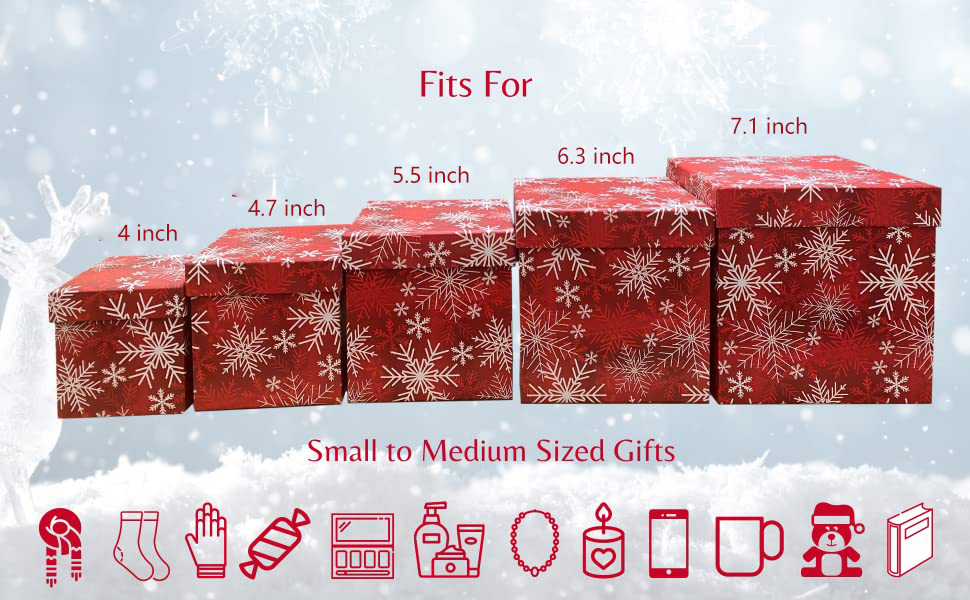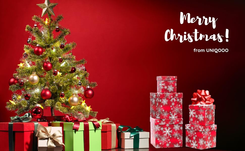 The UNIQOOO 5PCS Christmas Nesting Gift Boxes set includes five beautifully designed, stackable boxes in various sizes, perfect for wrapping gifts for any occasion. Made from durable, eco-friendly paper, these boxes are ready to use with no additional wrapping required, making them a convenient and stylish choice for holiday gifting and celebrations.