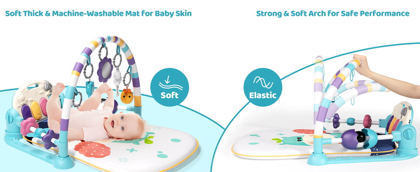 This Baby Gym with Kick and Play Piano is a thoughtfully designed activity mat featuring 6 play modes and 5 detachable sensory toys to support infant development from 0-12 months. It includes a soft LED-lit piano keyboard that promotes vision and auditory skills, crafted from premium, machine-washable cotton with safety guardrails. Lightweight and portable, it’s ideal for busy parents seeking a versatile, hygienic, and engaging play solution.