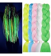Ms Aloe’s 20-piece set of 22-inch synthetic clip-in hair extensions offers 10 vibrant colors that glow in the dark after light exposure. Crafted from heat-resistant, soft synthetic fibers, these extensions are easy to install without damaging your hair, making them ideal for parties, cosplay, or everyday style upgrades.