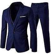 The YOUTHUP Men's 3 Piece Suit combines a slim fit blazer, adjustable waistcoat, and straight-leg trousers made from a polyester-viscose blend. Designed with classic details like a notch lapel and 1-button closure, this tuxedo is perfect for weddings, formal events, and business occasions. With practical pockets and an adjustable waistcoat strap, it offers both style and comfort, delivered with free next-day shipping and easy returns.