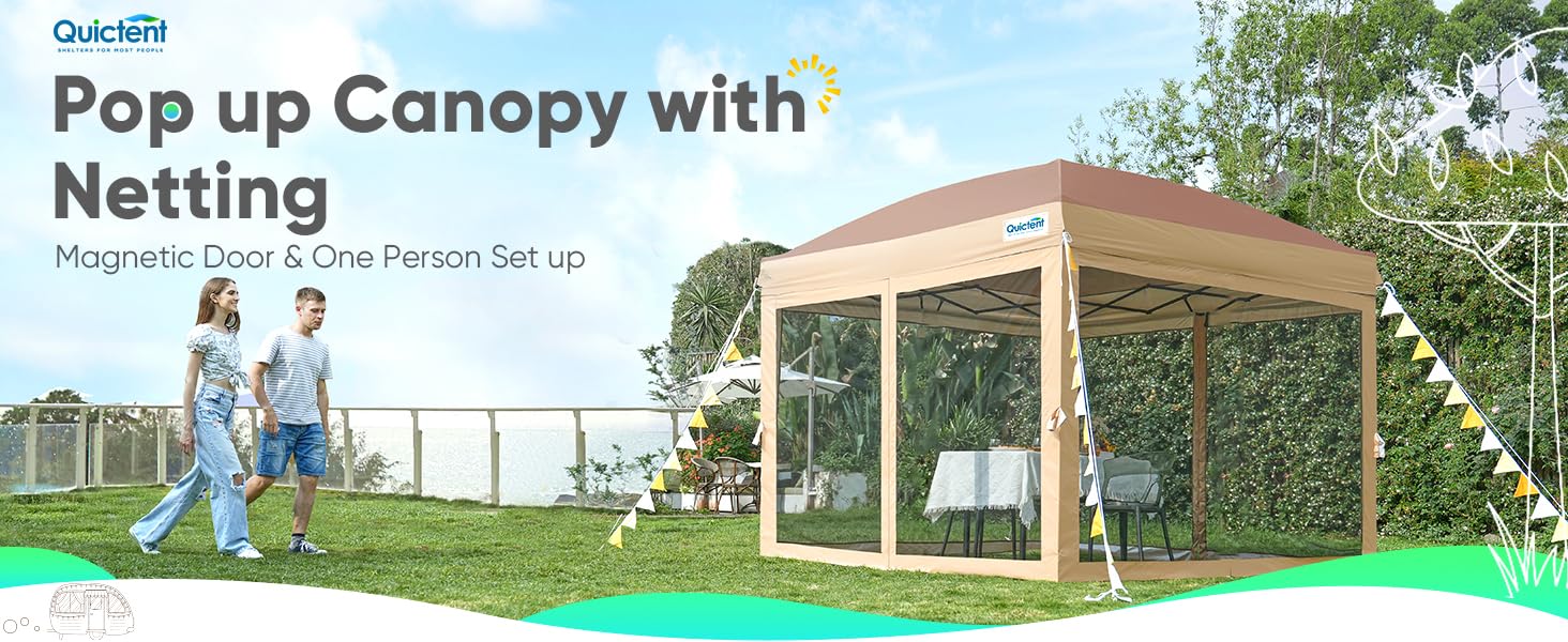 Quictent10’x10’ Pop up Canopy Tent with Netting, One Person Instant Setup Screen House Room Tent Screened- 4 Magnetic Doors, Waterproof (Khaki)