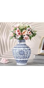 This Maxcheck set includes two classic blue and white porcelain vases crafted from durable ceramic, featuring an intricate interlocking branch lotus pattern. Sized at approximately 9 x 4.7 inches and 8.7 x 5.5 inches, these versatile vases are perfect for flowers or standalone décor. With glossy finishes and robust packaging, they make a sophisticated gift and a stylish addition to any living room, office, or bedroom.
