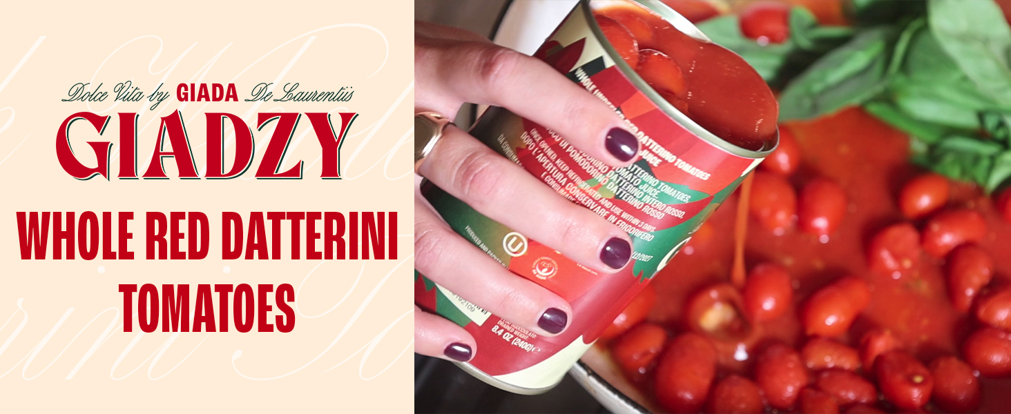 Giadzy by Giada De Laurentiis 2 Pack Whole Red Datterini Tomatoes, Unpeeled. Made in Italy with Simple Natural Ingredients.