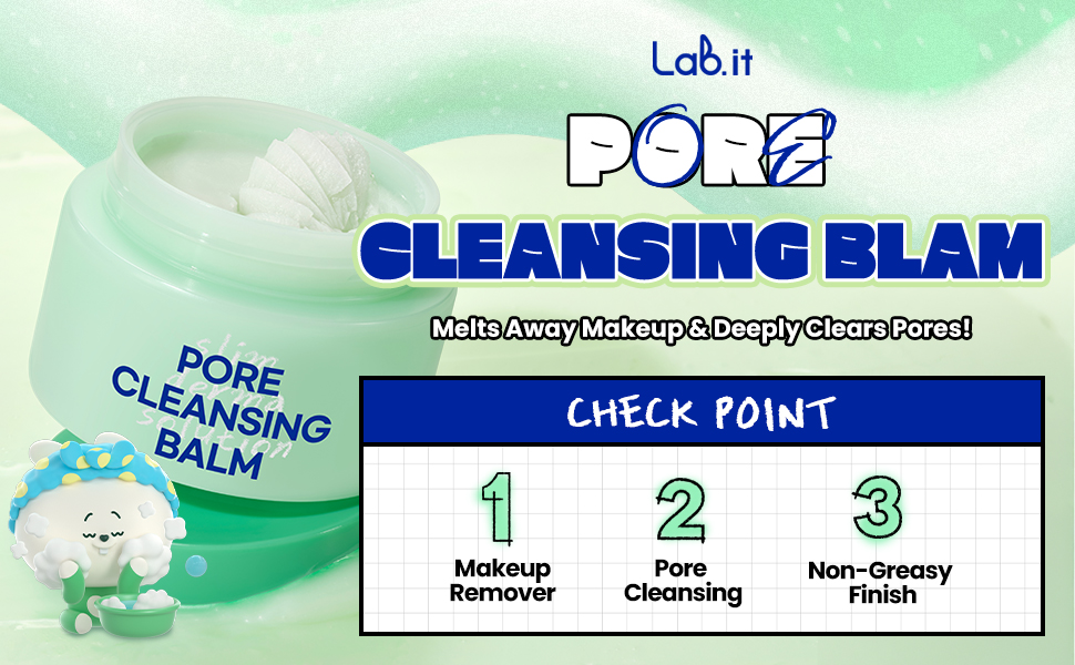Lab.it Pore Cleansing Balm is a 50g sherbet-textured makeup remover and facial cleanser that melts away stubborn makeup while deeply cleansing pores. Clinically proven to remove 95.9% of makeup residue and improve pore clarity by 18%, it combines Tannin™ and LHA to control sebum and smooth skin texture. This vegan, non-greasy formula is gentle enough for daily use on sensitive and oily skin, delivering a fresh, hydrated finish without irritation.