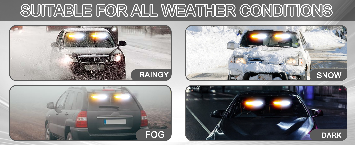 The Emergency Dash Strobe Lights feature 80 high-brightness LEDs housed in a rugged, waterproof aluminum frame. With 29 flash patterns and a memory function, these 14-inch amber/white light bars mount securely via upgraded suction cups on any 12V vehicle dash or windshield. Designed for maximum visibility and durability, they are ideal for emergency, construction, and safety vehicles.