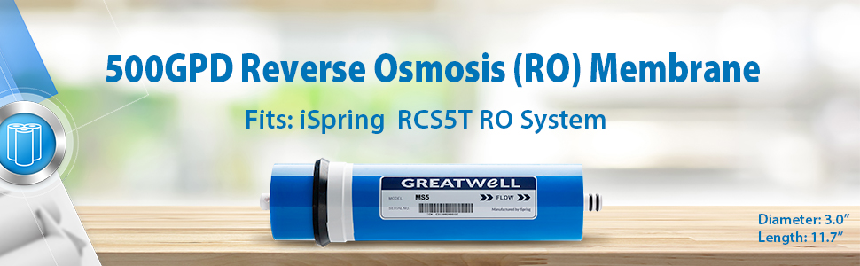iSpring MS5 2.8" x 12 500GPD SIDE-FLOW Reverse Osmosis Membrane, Fits RE5T